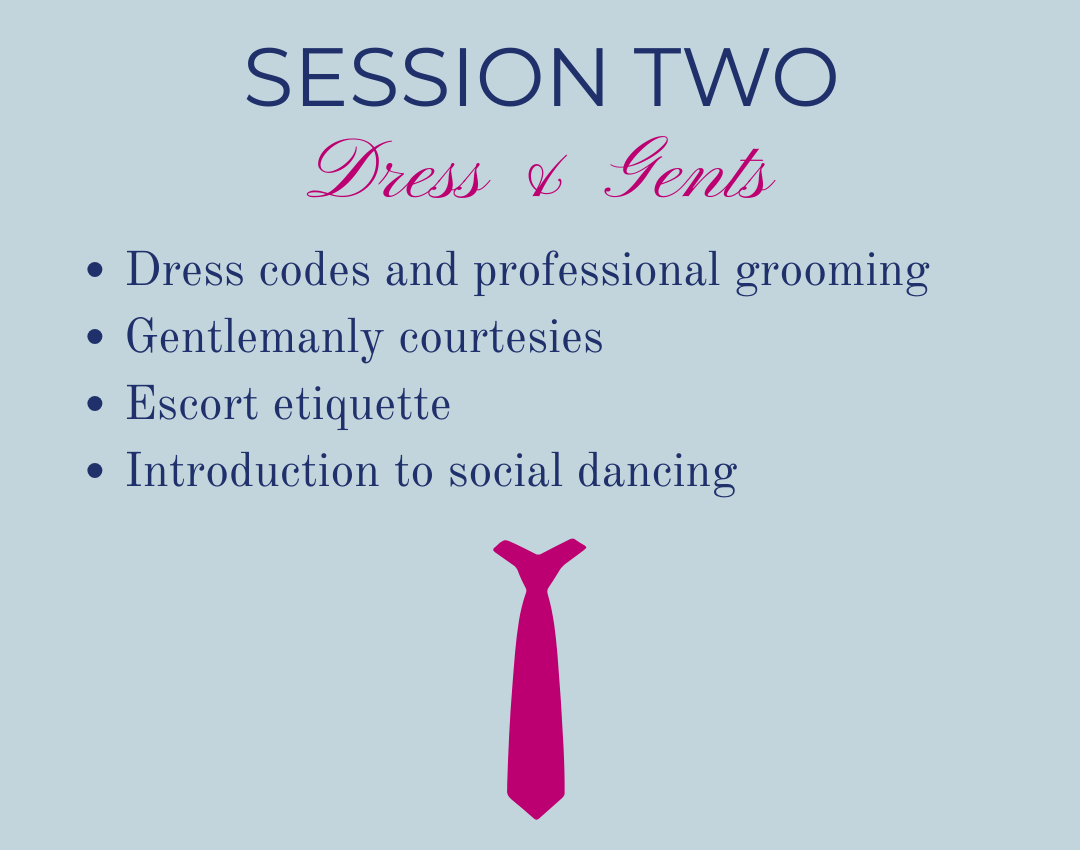 8+ HOURS of group instruction in etiquette, manners, and social dance at a wonderful venue.